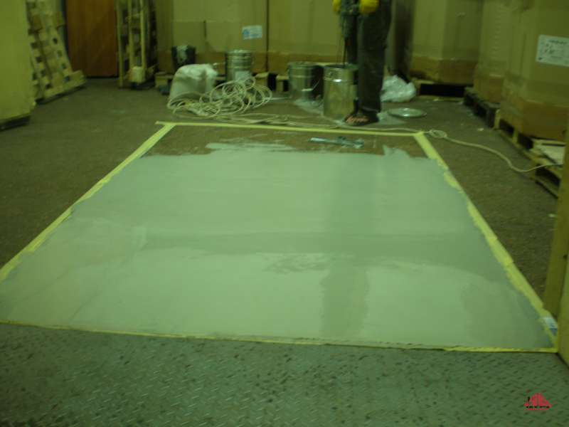 Устройство ударопрочного пола Анкофлор УТ в зоне приёмки сырья на пищевом производстве. Толщина покрытия 3,5 мм.