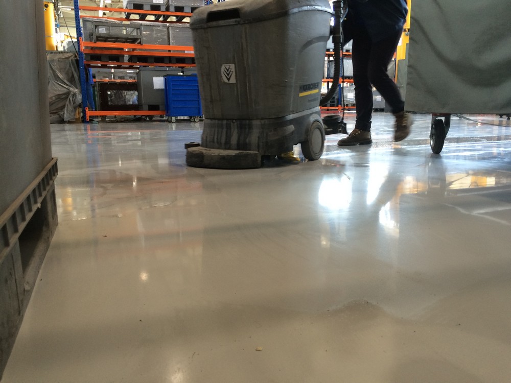 Горюче-смазочные материалы, которые попадают на поверхность полов, отлично смываются при помощи моющей машины, после чего эпоксидный наливной пол Анкофлор У приобретает первоначальный вид.