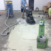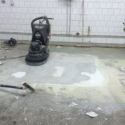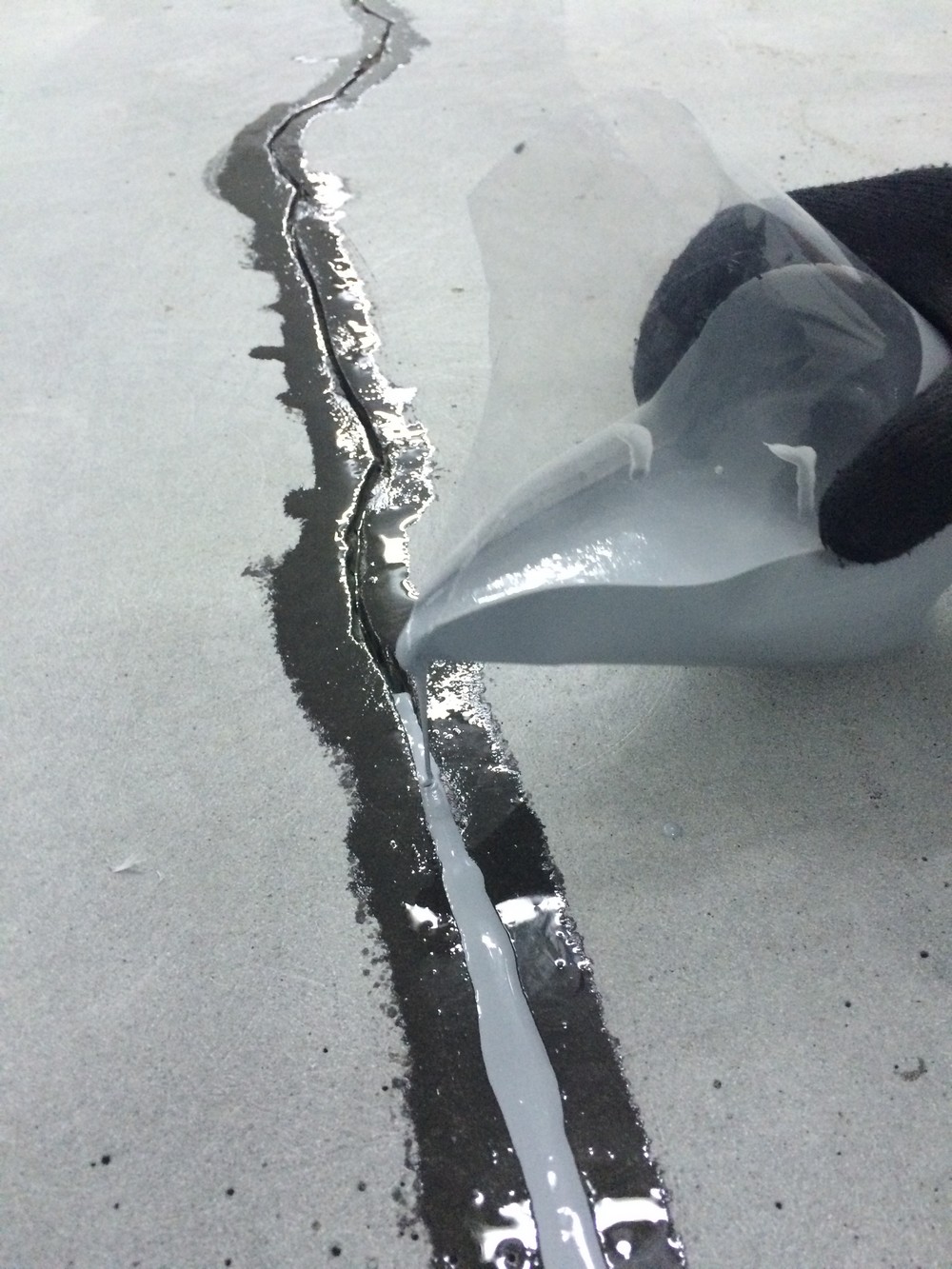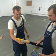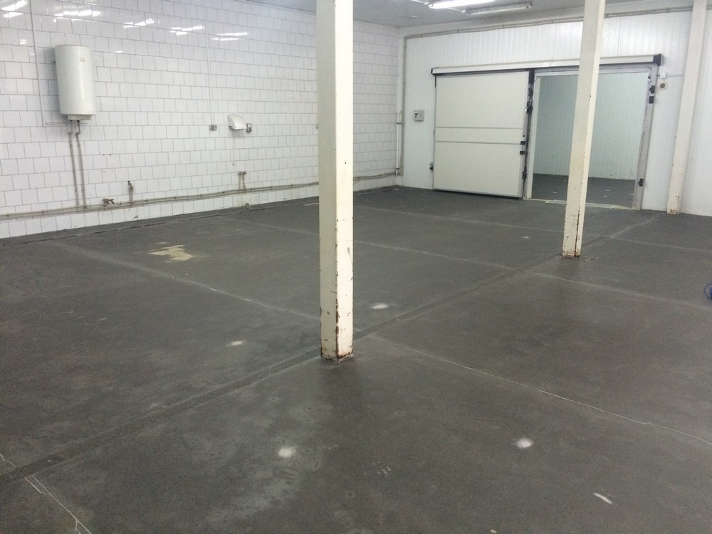 В нашем случае покрытие пола отработало 7 лет и заказчик решил, без крупных вложений, провести реставрацию покрытия. Была проведена фрезеровка с последующей шлифовкой поверхности пола. Усадочные трещины заполняем пластичным составом Анкопласт Е-2025, а швы герметизируем п.у. герметиком сикафлекс. Для финишной защиты поверхности бетона применяем эпоксидный упрочнитель Анкопласт Е-622, который наносим в три слоя.